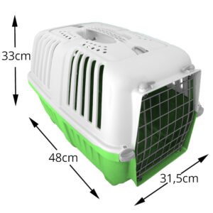 Ένα κλουβάκι μεταφοράς με μεταλλικό πορτάκι, για σκύλους και γάτες που έχει κατοχυρωθεί διεθνώς.