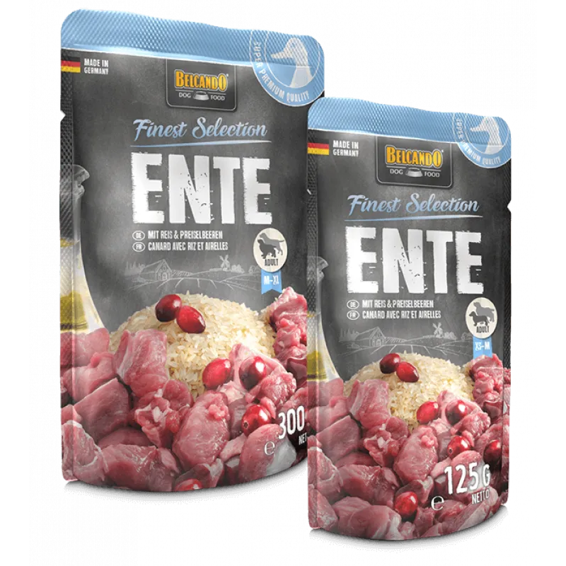 Τα φακελάκια BELCANDO® FINEST SELECTION είναι εξαιρετικά νόστιμα και εύπεπτα, ιδανικά για ευαίσθητους και καλομαθημένους σκύλους. Εξαιρετικές συνθέσεις σε πρακτικές ατομικές μερίδες. Ζουμερό κρέας ενισχυμένο με ραφιναρισμένα συστατικά. Μαγειρεύεται ελαφριά σε ατομικές μερίδες. Η κάθε ποικιλία κρέατος ενισχύεται με πολύτιμο έλαιο γαϊδουράγκαθου ψυχρής πίεσης το οποίο είναι πλούσιο σε πολυακόρεστα λιπαρά οξέα.