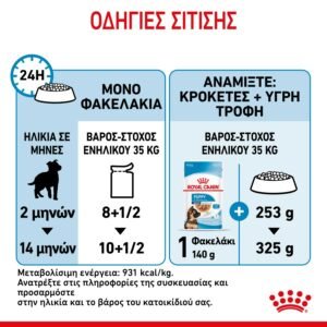 - Βέλτιστο θρεπτικό περιεχόμενο για να καλύψει τις ανάγκες των αναπτυσσόμενων σκύλων